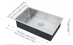 | DS2818-R10/7146 handmade single bowl kitchen sink undermount 710x460x228mm exterior 28"x18"x9" interior 26"x16"x9" *DRAINS INCLUDED* $139/pc A7 |
