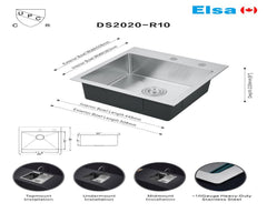 | DS2020-R10/5050 handmade single bowl kitchen sink topmount 16 gauged 508x508x228mm (20"x20"x9") inside 17-5/8"x15-1/8"x9" *DRAINS INCLUDED* $119/PC A7 |