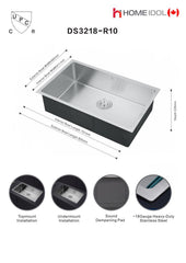 | DS3218S-R10 handmade single bowl kitchen sink undermount 16 gauged 800x460x250mm (31-1/2"x18"x10") inside 29-1/2"x16.18"x10" *DRAINS INCLUDED* $139/PC A7 |