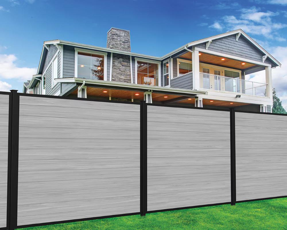 Fence Metal Grey $175/set Honest Price(No Fancy Showroom No Golddigger No Kickback) 1.9M POST METAL BASE INSIDE INSERT WPC fence board light grey 6'x6' 1.8x1.8m 12pcs(2bags)/set with accessories (1.9m post *1pc only+1 base+2 edges+screw) A10.5
