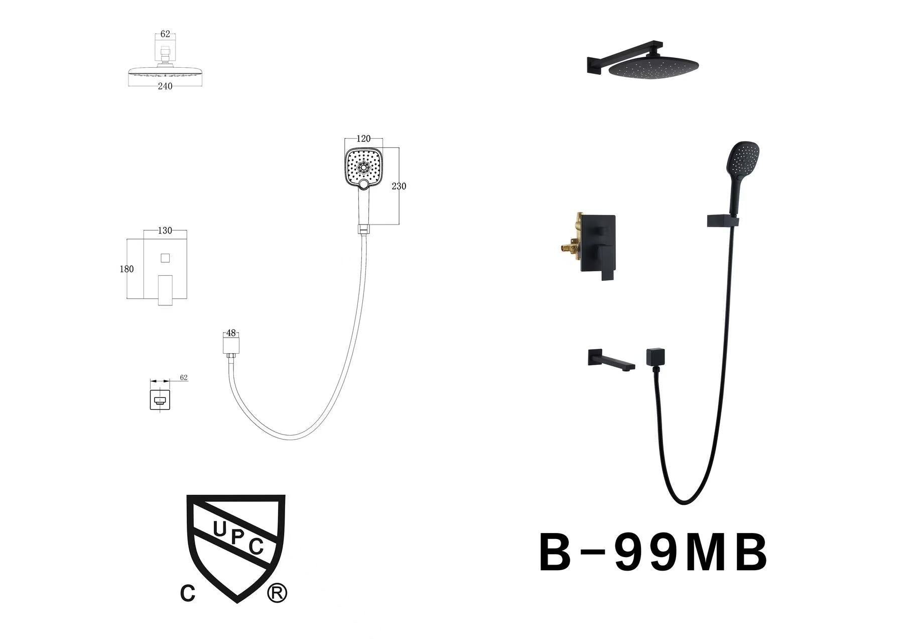 S-99MB matt black shower combo (with shut off no pex fitting) $169/SET 10SETs+ $149/SET A8