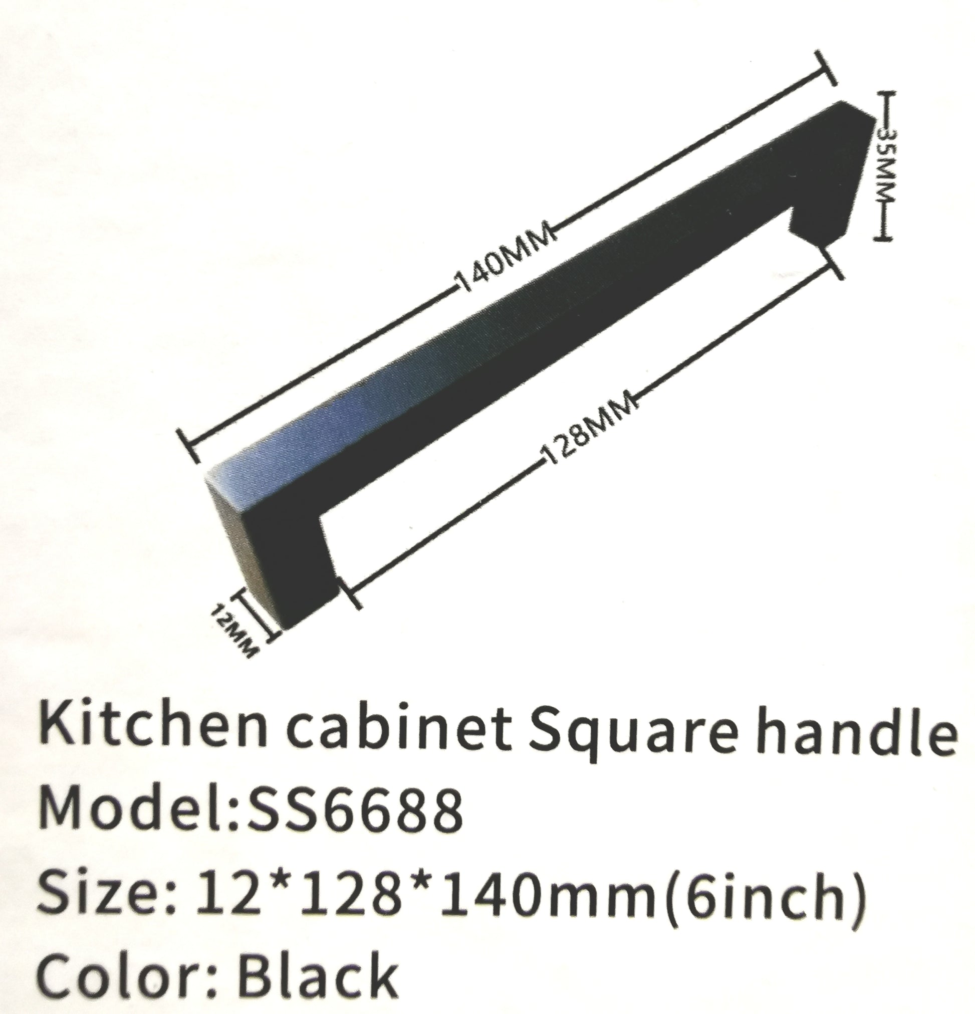 SS6688 kitchen cabinet H bar handle black square handle 6" 12*128*140mm $1.99/pc 100pcs+ $1.49/pc B2