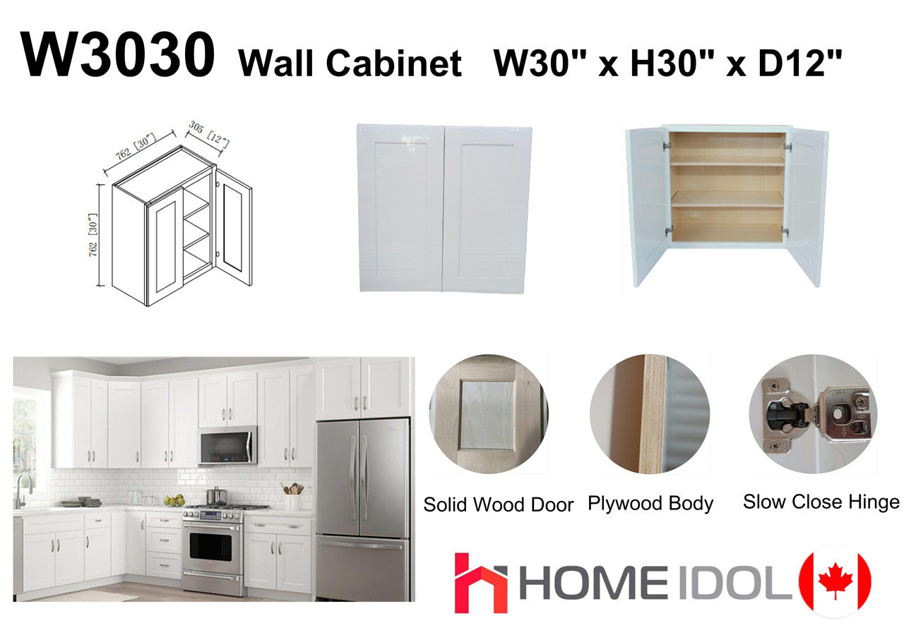 W3030 30" Plywood white shaker wall kitchen cabinet 30"w*30"h*12"d (solid door, plywood body and dovetail drawer best in the industry) $99 Honest Price(No Fancy Showroom No Golddigger No Kickback) A6.5